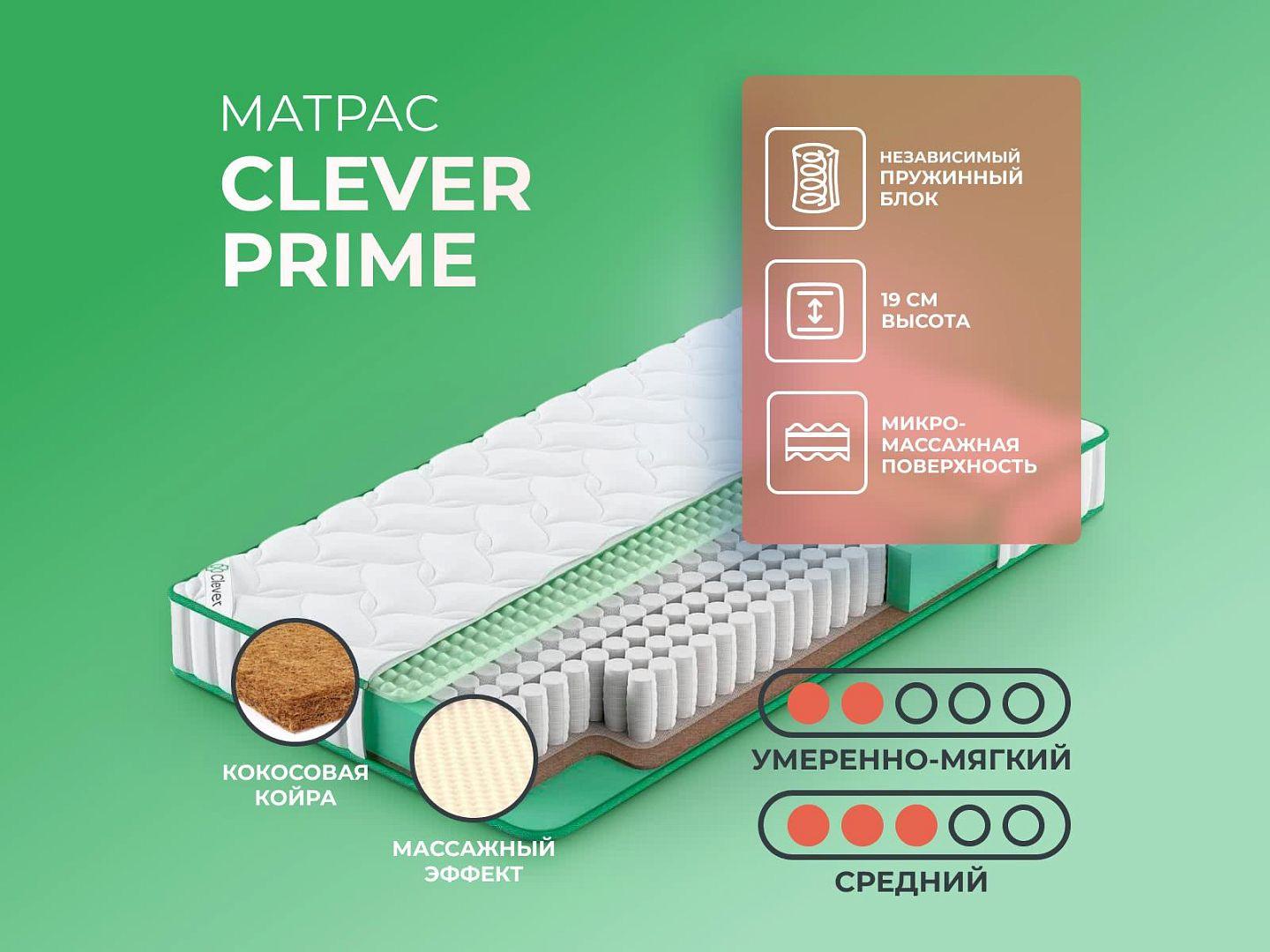 Фабрика Clever получила заслуженную репутацию, благодаря применению новых технологий и безупречному соблюдению стандартов качества. Clever Prime — образец продукта с лучшими характеристиками и доступной ценой, матрас создан из дышащих тканей, с эффектом вентиляции.