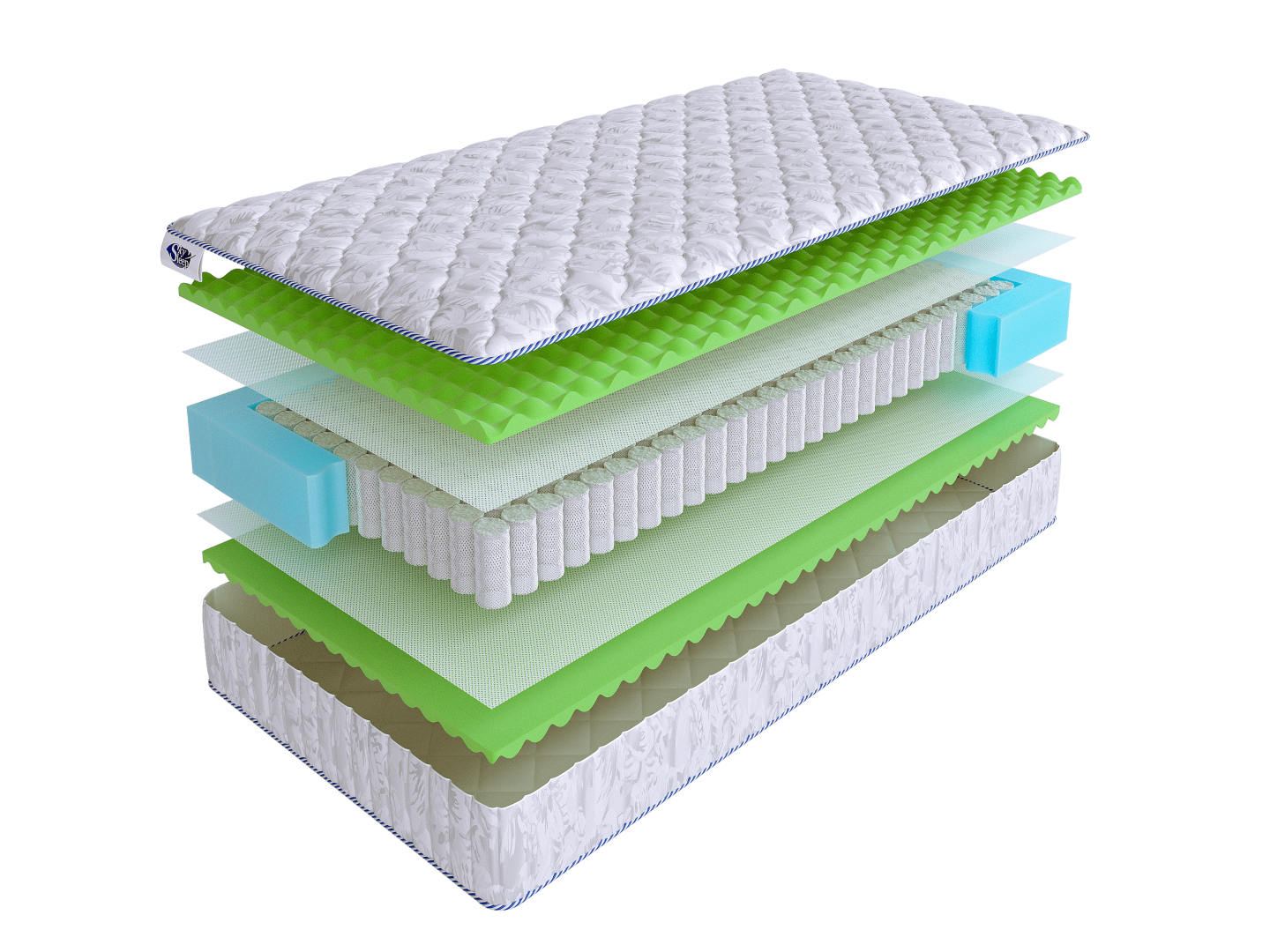 Чехол матраса выполнен из хлопкового жаккарда, простеганного на 100 г. синтепона.